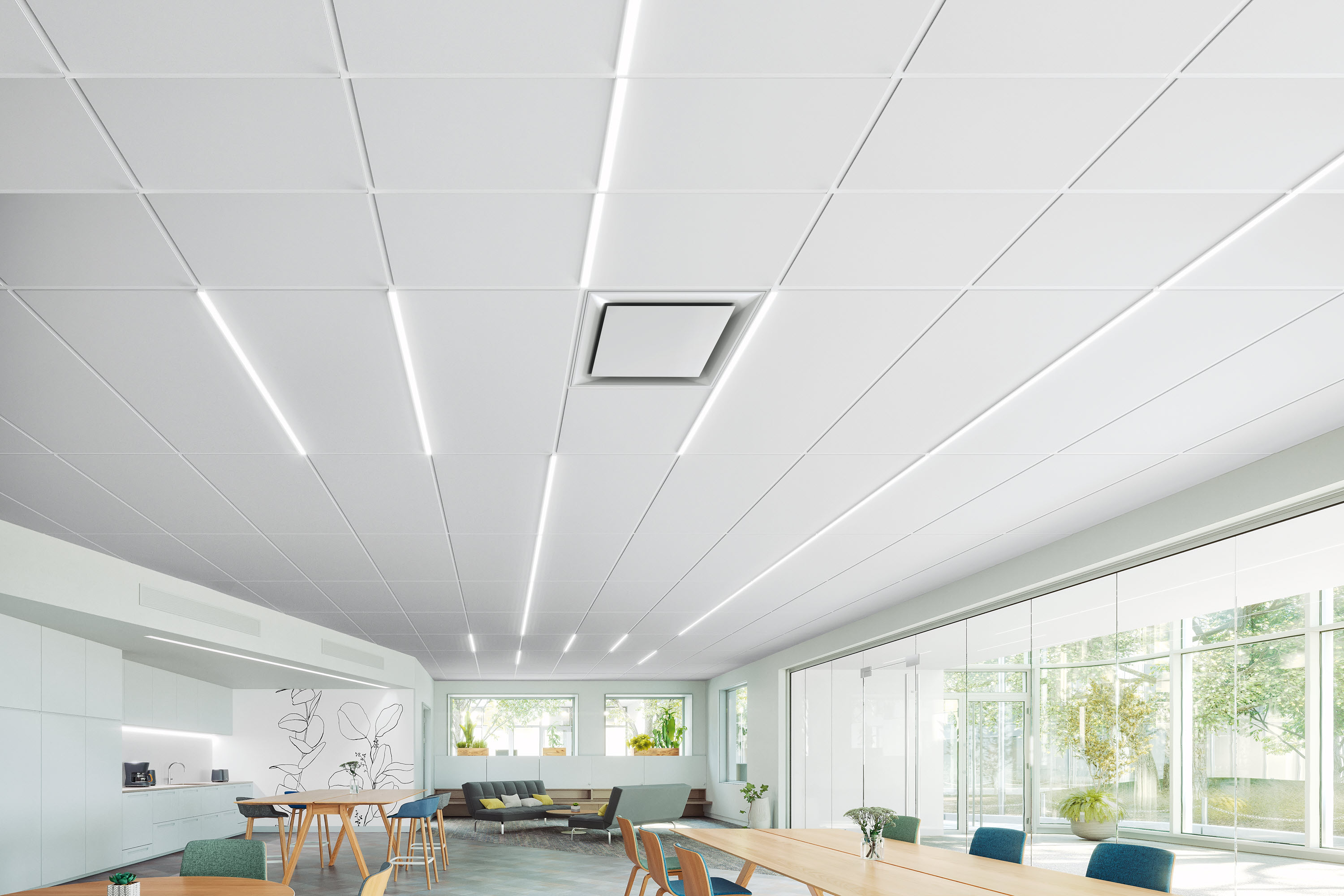 The STRATACLEAN IQ system meets the in-room filtration recommendations made by the EPA Clean Air in Buildings Challenge. The system is also part of the Armstrong portfolio of ceiling and wall products that contribute to healthier, safer spaces and cleaner air. The growing line includes AIRASSURE gasketed ceilings that reduce air leaks through the ceiling plane. It is also part of the CLEANASSURE family of disinfectable ceiling panels,suspension systems, and trim.
