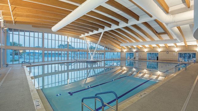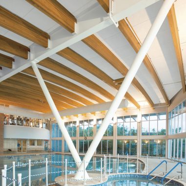 The TECTUM roof deck offers a single-step easy installation, high insulation values and acoustical noise reduction in the pool area.