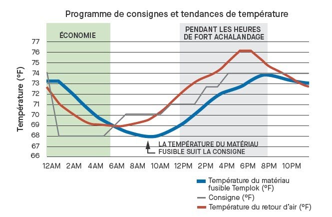 (Fig. 2) Tendances de température le 19 septembre, deux jours après l’installation de Templok et changements des points de consigne.