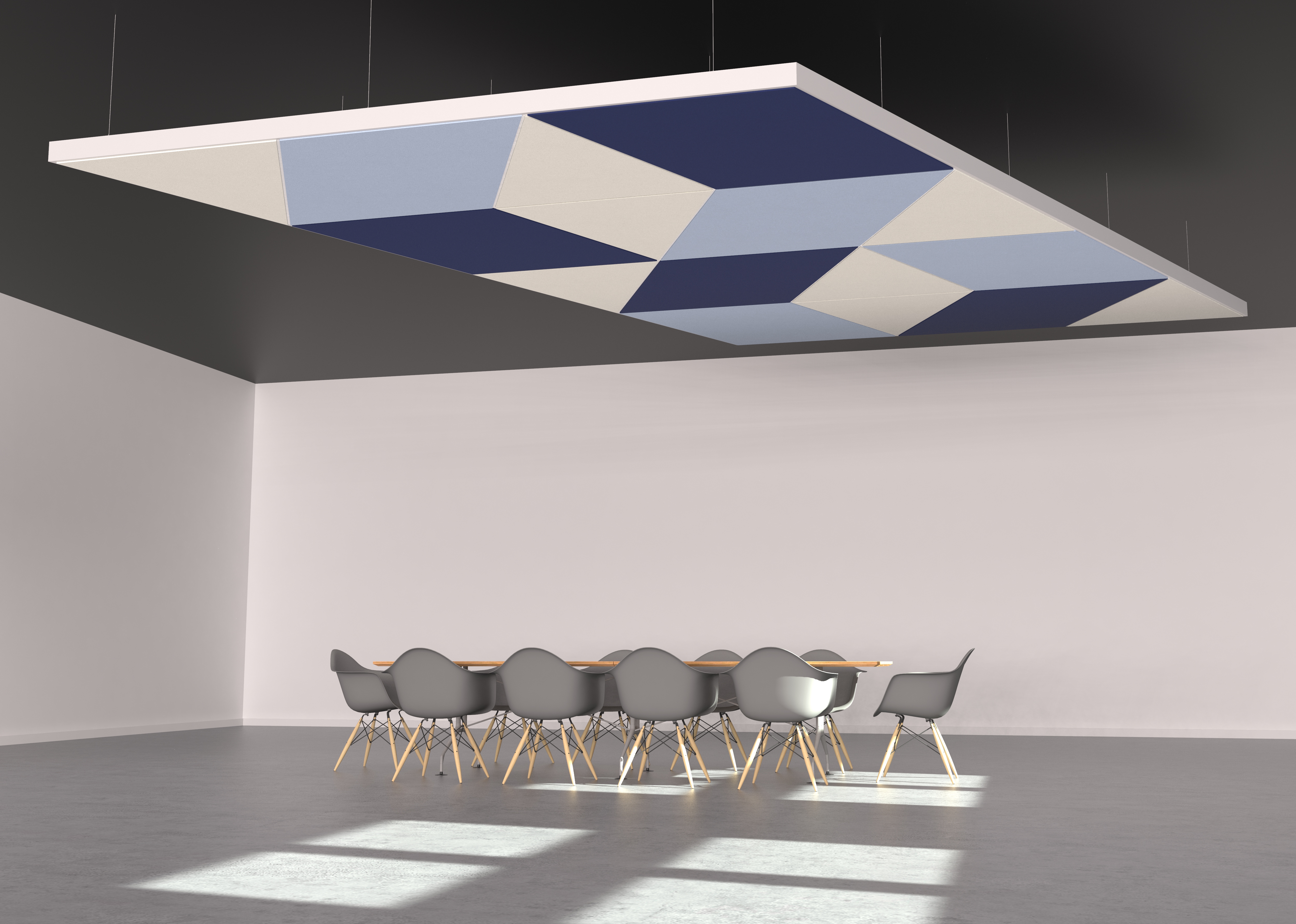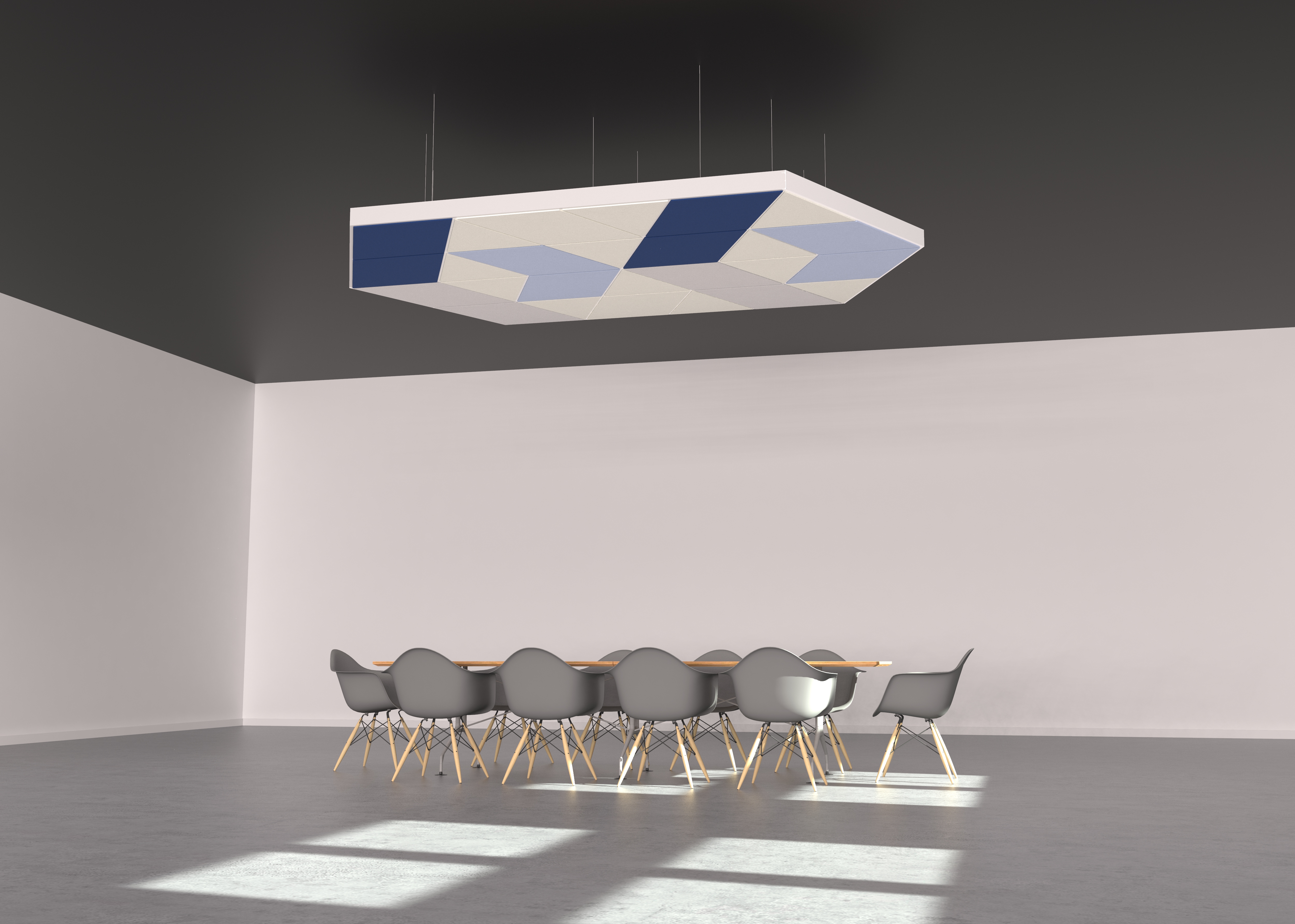 Melhore a acústica com as Nuvens Acústicas DESIGNFLEX for FORMATIONS - Kits completos de instalação que criam nuvens com visual único sem incertezas.